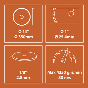 - Compatibile per seghe da 350mm ad alta velocità, comprese le troncatrici Evolution R350DCT.