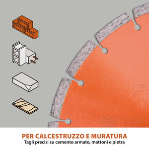- Bordo segmentato ideale per affrontare materiali duri e abrasivi come blocchi, laterizi e rebar. Leggi di più