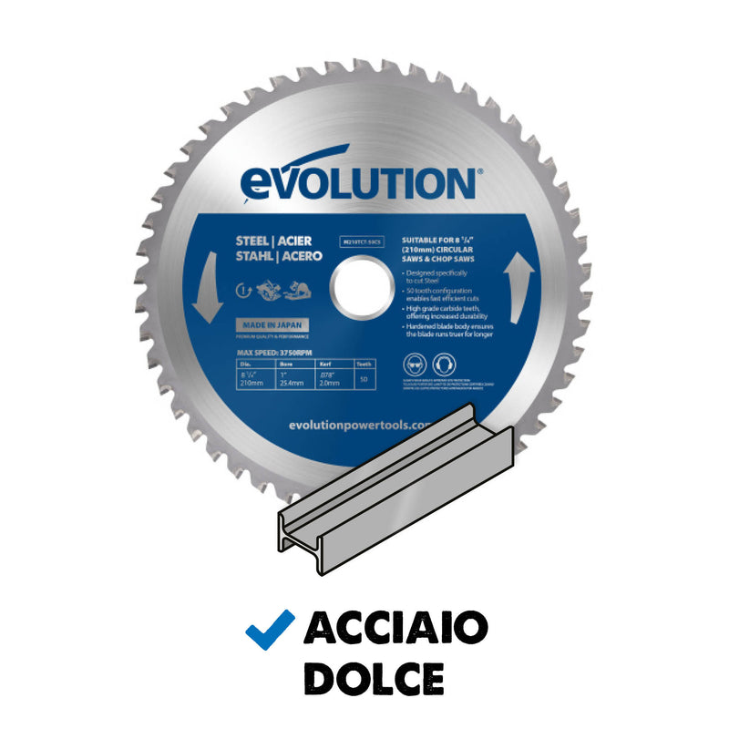 Lama per acciaio in TCT Evolution da 210 mm, 50 denti e alesaggio da 25,4 mm per sega circolare