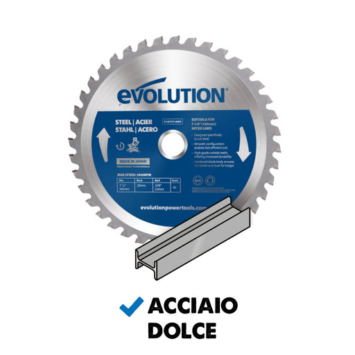 Lama per acciaio in TCT Evolution da 185 mm con 40 denti e alesaggio da 20 mm per troncatrice radiale angolare