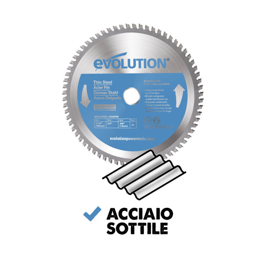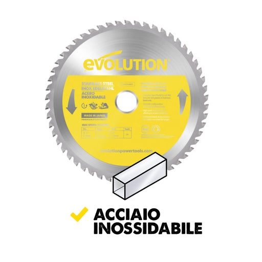 Lama taglio acciaio inox in TCT Evolution da 185mm, 48 denti, alesaggio 20mm per sega circolare