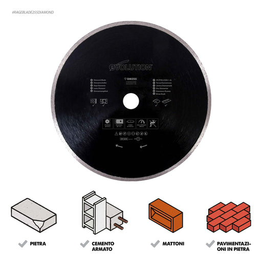 Disco diamantato Evolution da 355 mm con alesaggio da 25,4 mm per troncatrice a trazione