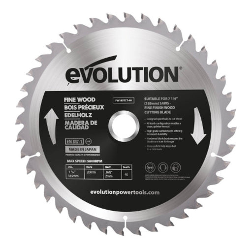Lama per acciaio in TCT Evolution da 185 mm con 40 denti e alesaggio da 20 mm per sega circolare