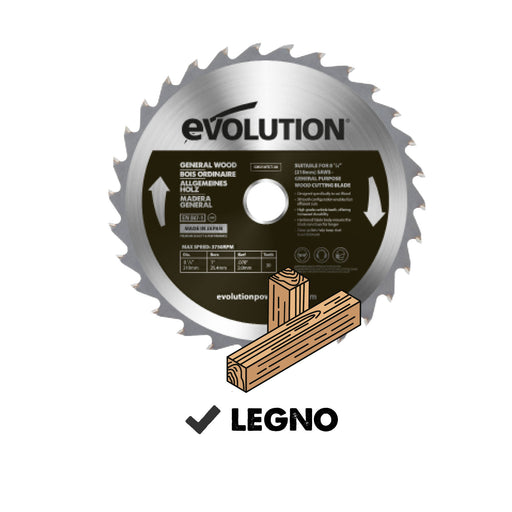Lama speciale per taglio alluminio TCT Evolution da 210mm, 60 denti, alesaggio 25.4mm per sega circolare