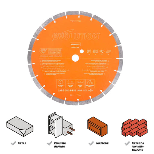 Disco diamantato premium segmentato da 300 mm con foro da 22,2 mm Evolution per sega circolare per calcestruzzo