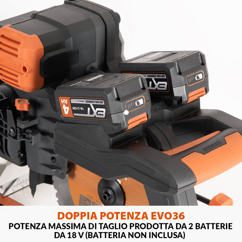 - Potenza e precisione senza fili – Motore brushless da 36V alimentato da due batterie EXT 18V per oltre 300 tagli con una sola carica (batterie e caricatore non inclusi).