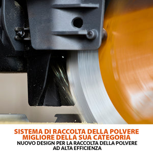 - Progettata per il cantiere e l’officina – Pesa solo 16,6 kg, struttura in lega fusa ultra resistente e sistema di raccolta polvere.