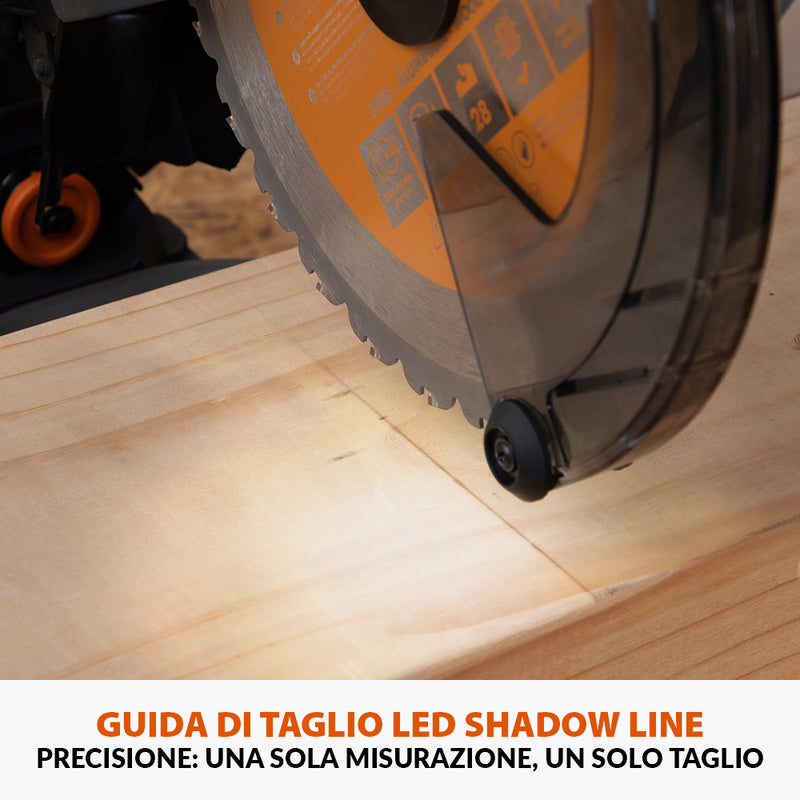 - Guida LED Shadow Line: proietta l'ombra esatta della lama sul pezzo per massima precisione