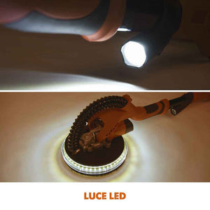 - Illuminazione a LED ad anello sulla testa di levigatura che illumina l'area di lavoro, permettendoti di vedere chiaramente anche nei punti più bui.