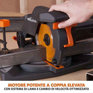 Pacchetto Evolution: Troncatrice a trazione angolare Evolution R210CMS+ con lama multi-materiale TCT + Supporto universale