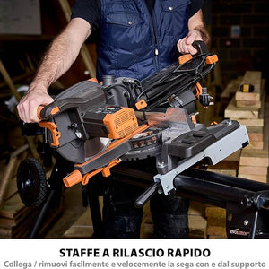 Pacchetto Evolution: Troncatrice radiale angolare da 255 mm R255SMS+ con lama multi-materiale TCT + Supporto universale PLUS