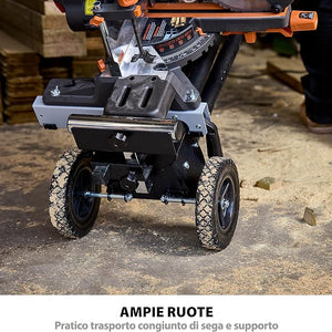 Inoltre, ha 5 posizioni regolabili in altezza, ruote per una facile portabilità e una compatibilità quasi universale con altri modelli di troncatrici.