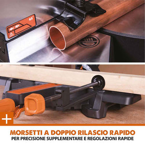 - Doppie morse a sblocco rapido: Per una maggiore precisione e regolazioni rapide, ottimizzando il flusso di lavoro.