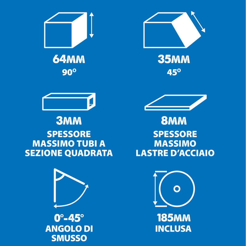 - Compatibile con lame speciali per il taglio di acciaio inox e alluminio (vendute separatamente), offre maggiore versatilità nell'affrontare diversi materiali con un solo utensile.