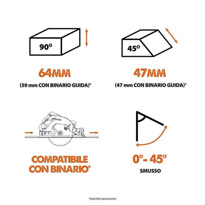 | Profondità di taglio max. (0°): | 64mm (59mm con guida) |