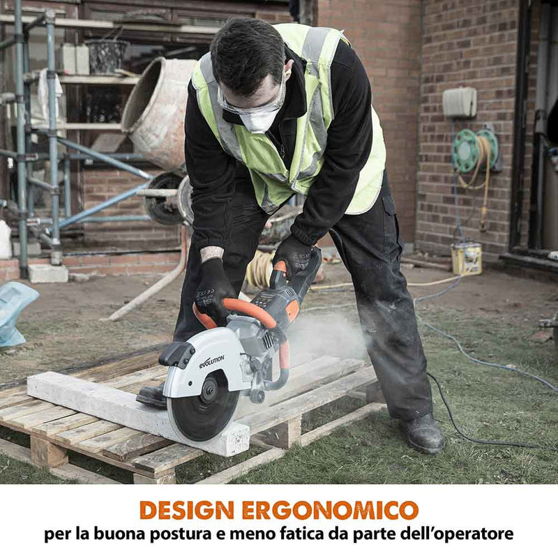 La nuovissima Sega per Calcestruzzo elettrica Evolution R300DCT è lo strumento più semplice per tagliare il calcestruzzo standard e armato, la pietra, i mattoni e molto altro.