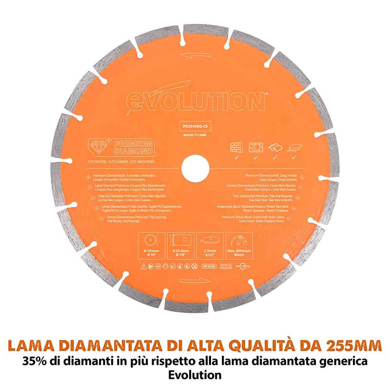 Sega per calcestruzzo elettrica da 255mm Evolution R255DCT con disco diamantato premium