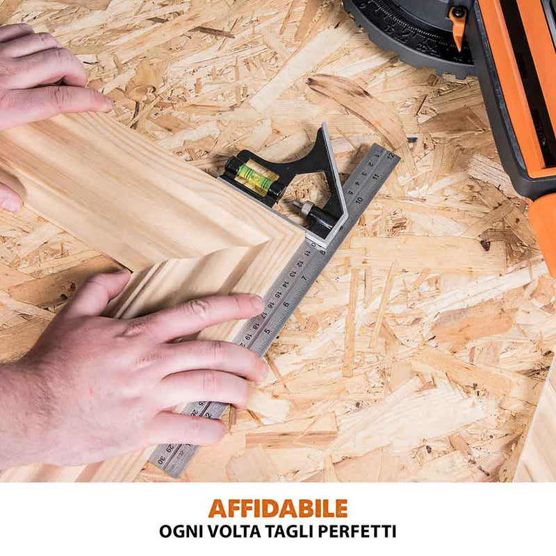 • Guida laser e angoli di taglio precisi: perfetta per rifiniture, modanature e lavori di precisione.