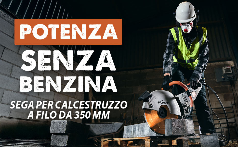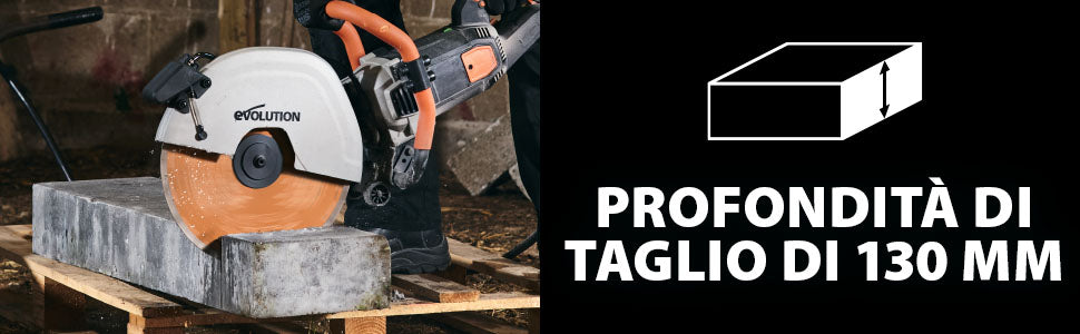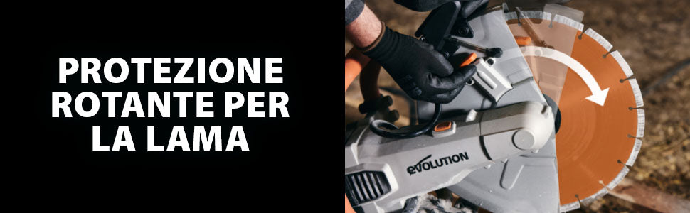 Nota: le seghe elettriche per calcestruzzo Evolution non sono compatibili con dischi abrasivi di terze parti. L’utilizzo di questi accessori non certificati può causare danni o lesioni.