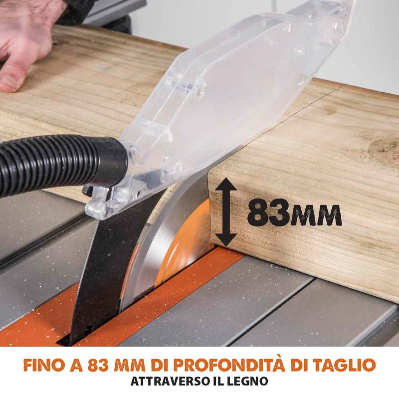 - Profondità di Taglio Eccellente: 83 mm a 90° e 58 mm a 45°, per soddisfare ogni esigenza di lavorazione.