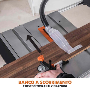 - Taglio Longitudinale di Precisione: Guida parallela con misurazione su rotaia per sfridi impeccabili.