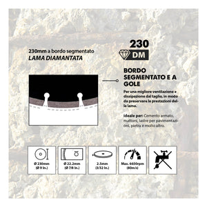 Disco diamantato segmentato Evolution da 230mm, alesaggio da 22,2mm