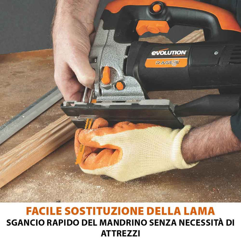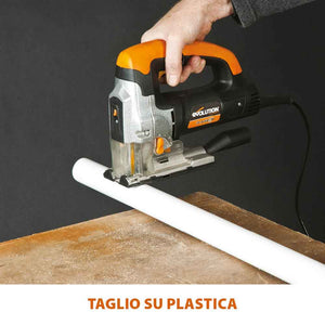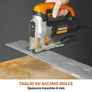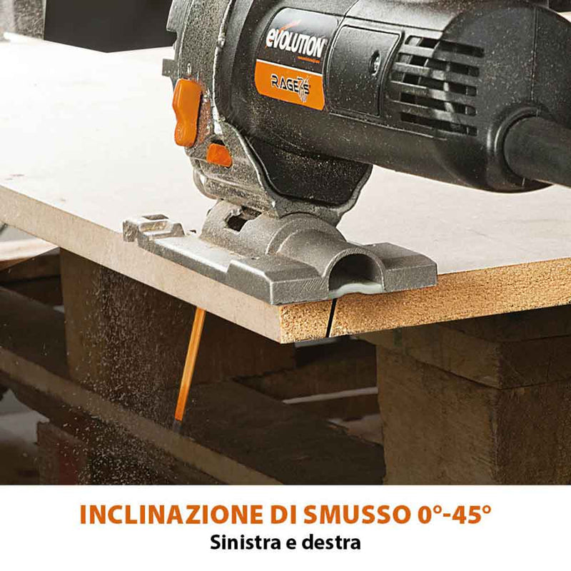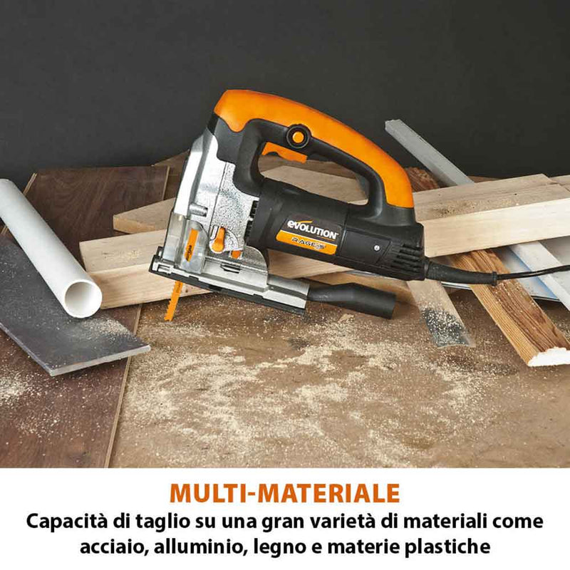 Il seghetto alternativo RAGE7-S di Evolution è stato progettato per portare versatilità e precisione nelle tue mani. Con una potenza di 710W, taglia facilmente legno, plastica, acciaio e metalli.